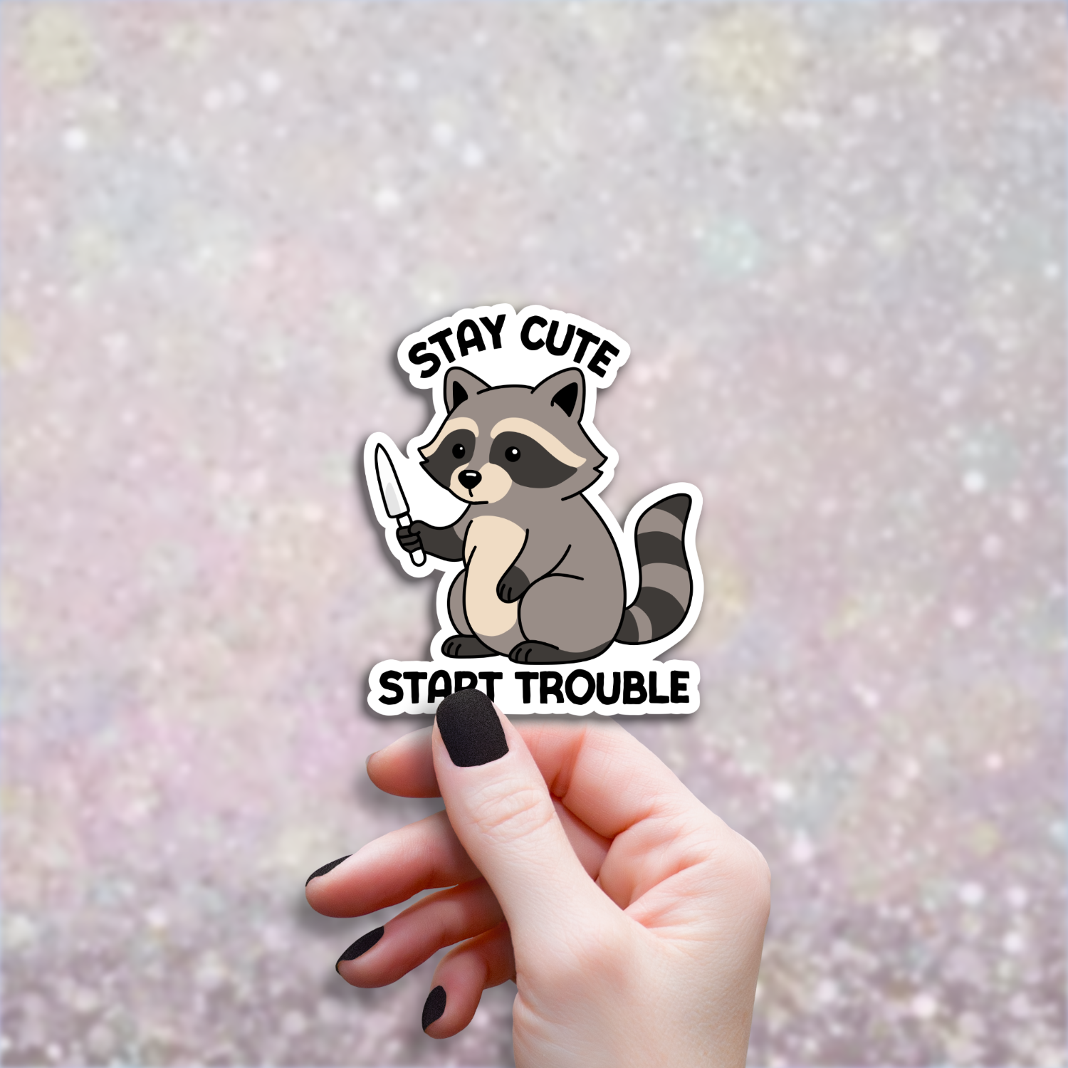 Meet your new spirit animal. This trash panda sticker knows that life is about balance: looking adorable while holding a metaphorical (or literal) knife to the throat of "business as usual." Perfect for the agents of chaos who refuse to compromise their aesthetic for their attitude. Whether youβre decorating a water bottle, laptop, or your favorite dumpster-diving vehicle, this sarcastic raccoon decal reminds everyone that "cute" is just a cover for "complicated."